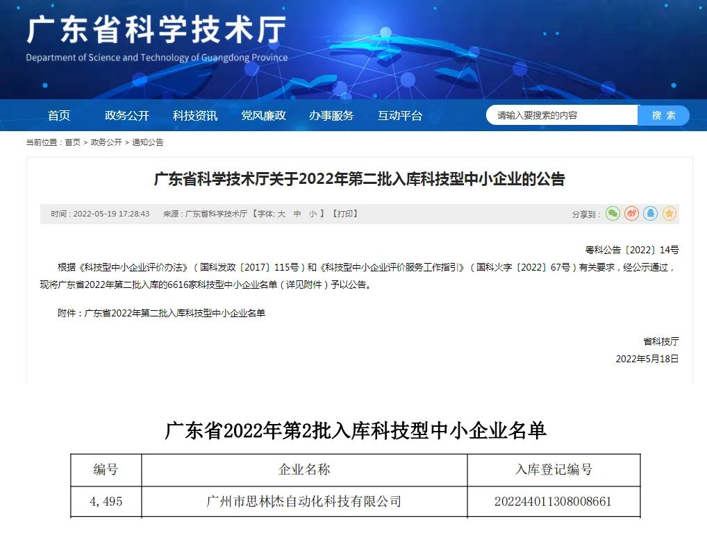 思林杰自成立以来,始终坚持持续的经营创新、技术创新与管理创新,注重自主创新研发实力。同时,为了持续提升企业技术创新能力及企业品牌形象,公司于2022年4月申报“科技型中小企业评价”,于2022年5月19日获批入库第二批科技型中小企业名单。自2018年以来,公司已连续5年获批入库科技型中小企业名单。