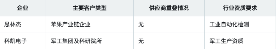 根据《国民经济行业分类》,两者分属不同行业大类。思林杰产品为嵌入式智能仪器模块,应用于工业自动化检测;科凯电子生产军用微电路模块,需在极端环境下稳定工作,原材料及应用场景差异显著。