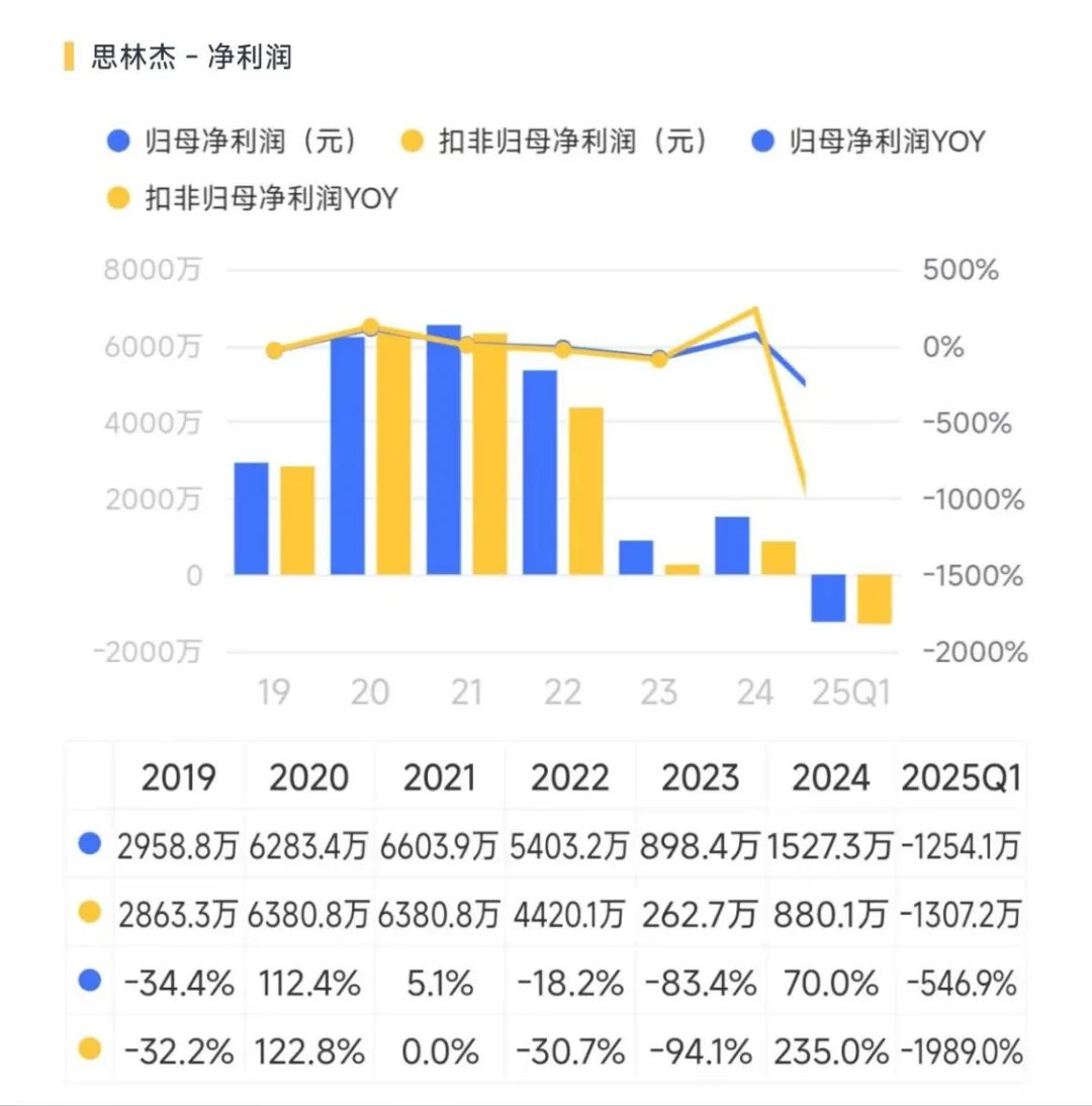 收入规模缩水的同时,刚性支出却是一直存在的。因此利润端自2023年起持续疲软,2024年仅微利1,527万后,2025年一季度已陷入亏损。