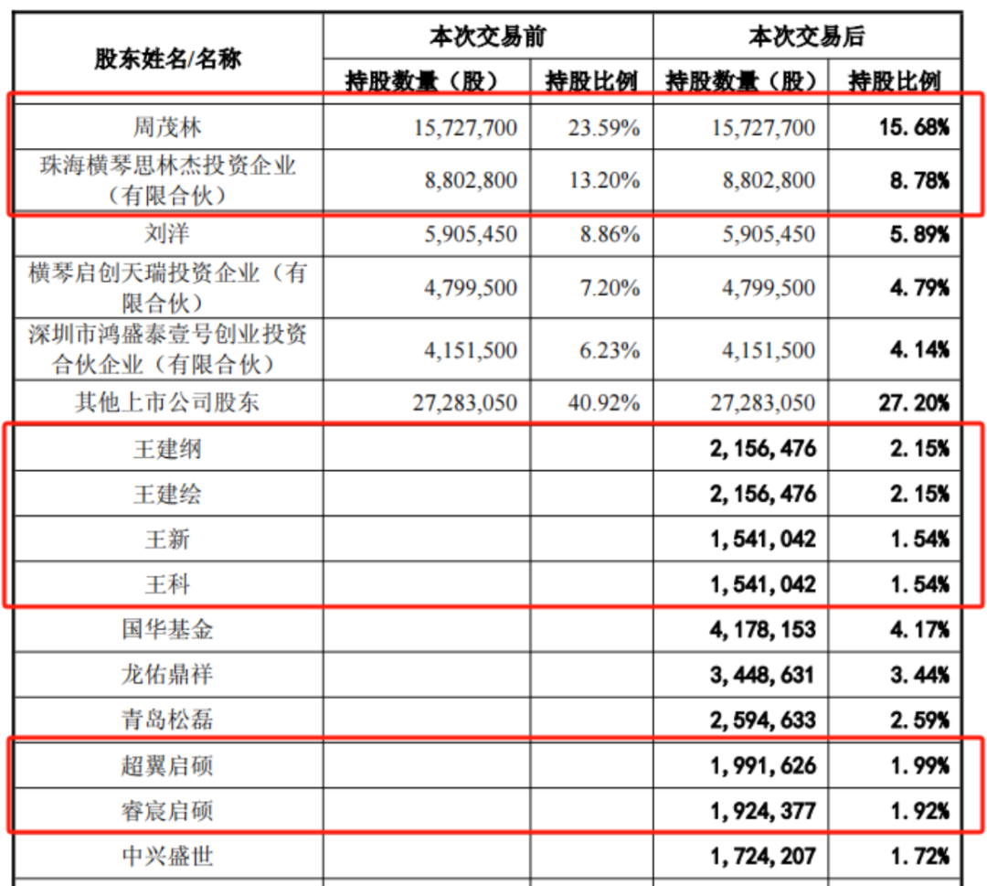 不过由于拿到了近9个亿的现金对价,王建绘、王建纲、王新、王科四人最终仅获得739.51万股思林杰股份。交易完成后,四人合计直接持股比例约7.4%,控股比例约11.2%,完全无法构成威胁。