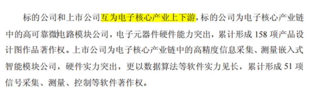 此外,思林杰还表示:自己以数据算法等软件实力见长,而标的公司电子元器件硬件能力突出,双方互为电子核心上下游关系。