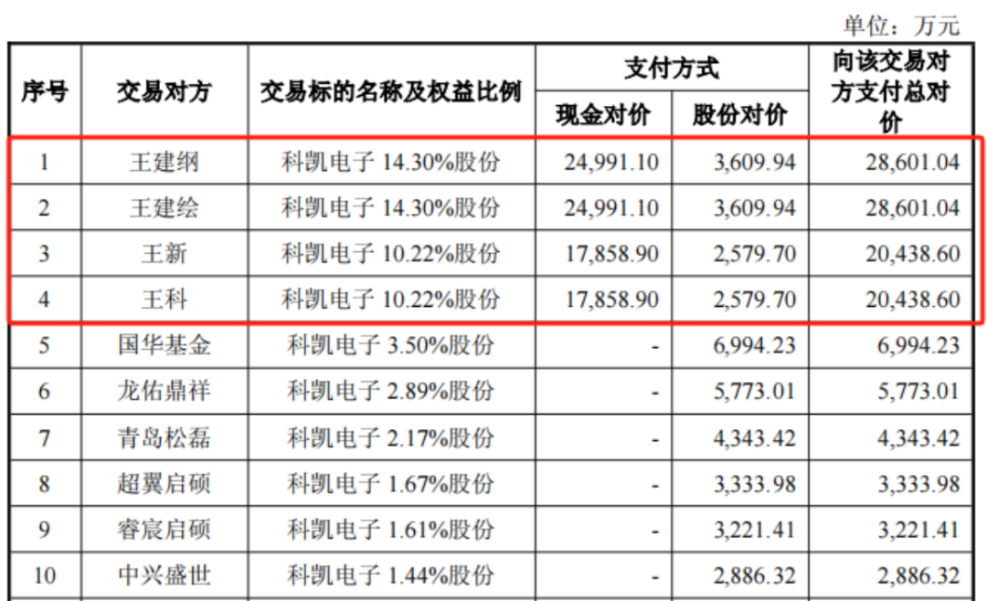 此外,科凯电子的股权结构相当集中,王建绘、王建纲、王新和王科家族四人直接持股78.04%,并能控制81.32%。