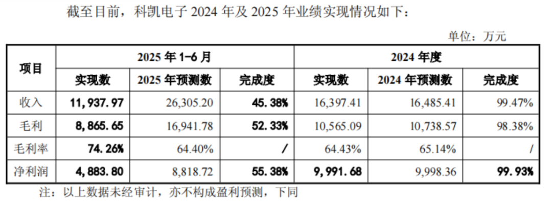 从2025年上半年的表现看,科凯电子实现净利润4883.80万元,已完成当年承诺目标的50%以上。
