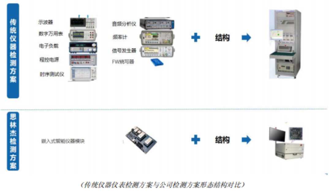 相对于传统的仪器仪表,思林杰的模块化方案虽在效率与成本上占优,但定制化程度更高、通用性不足,在复杂或多场景检测中并不具备优势。