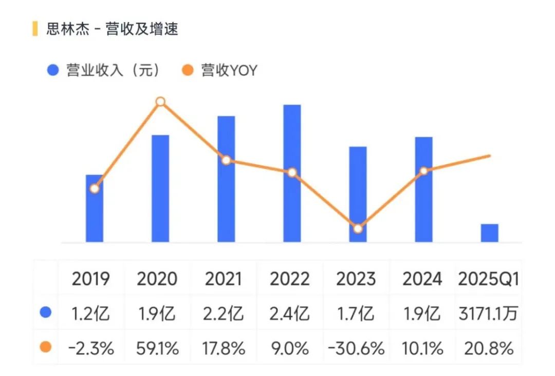 受限于狭窄的需求空间,思林杰的营收规模极其有限,历史峰值也就两个多亿的水平,2023年时受消费电子景气下行影响还出现了一波30%的大幅下滑,至今仍未见起色,2024年仅有1.85亿。