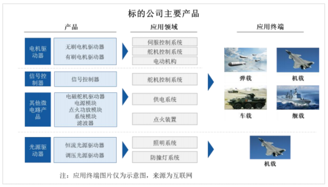 再来看标的公司科凯电子,这是一家军工企业,主营产品为高可靠微电路模块,包含电机驱动器、光源驱动器、信号控制器等,应用于弹载、机载、车载、舰载等军工领域的伺服控制与照明控制系统。