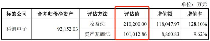 此前,思林杰以2024年8月31日为评估基准日,采用收益法对科凯电子100%股权的评估值为21.02亿元,增值率128.1%。在此估值基础上,收购完成后将确认商誉金额7.83亿元。