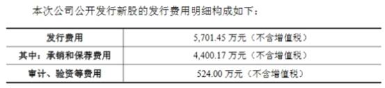 普元信息发行费用总计5701.45万元,其中,支付给保荐机构、主承销商民生证券的承销及保荐费用4400.17万元。