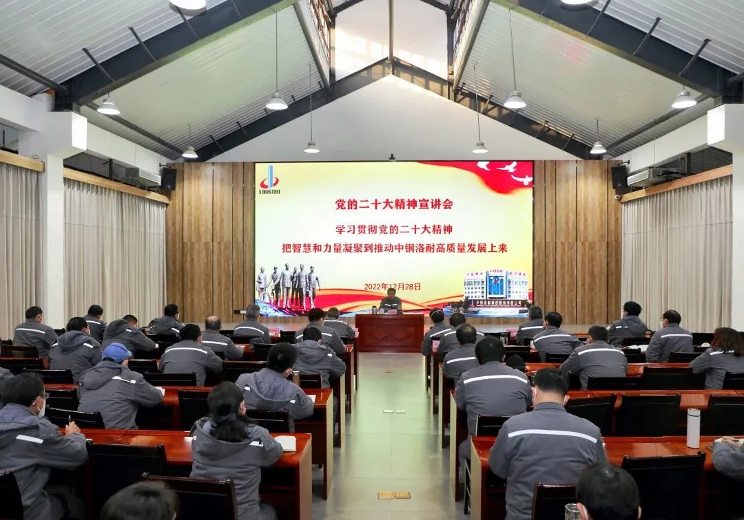12月28日下午,中钢洛耐党委召开学习宣传贯彻党的二十大精神宣讲会。党委书记、董事长李国富以“学习宣传贯彻党的二十大精神,把智慧和力量凝聚到推动中钢洛耐高质量发展上来”为主题作宣讲。公司领导班子成员、总经理助理级干部、中层正职、主持工作的中层副职参加会议。