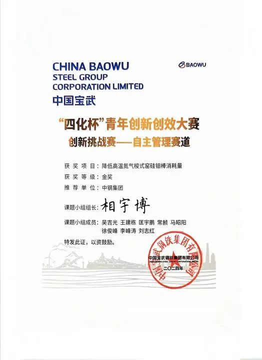 中国宝武自主管理活动经验交流会暨首届“四化杯”创新创效大赛自主管理赛道综合评审活动于10月16日—18日在马鞍山举办。中钢洛耐发布的“降低高温氮气梭式窑硅钼棒消耗量”项目从24支队伍参赛队伍中脱颖而出,荣获金奖!