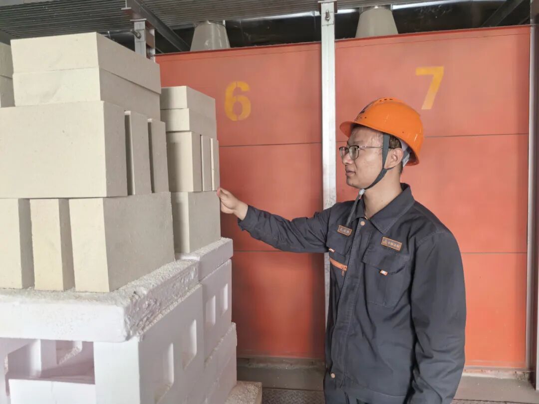 实验室研制成功并不代表生产能顺利实施,尤其对结构复杂的耐火材料而言,更是如此。中试过程中,最难生产的是一种多孔砖,表面均匀分布30多个扁长孔,孔径仅有几毫米。面对复杂的砖型,怎么快速成型成了重中之重。当时,作业区没有液压机,为优化模具需要将上百公斤重的模具运到另一个厂区进行尝试,单单成孔插片的材质就换了5种。通过不断尝试、改进,模具得以成型。看着有序批量生产的砖坯和产品,范沐旭这才松了松紧绷的神经。