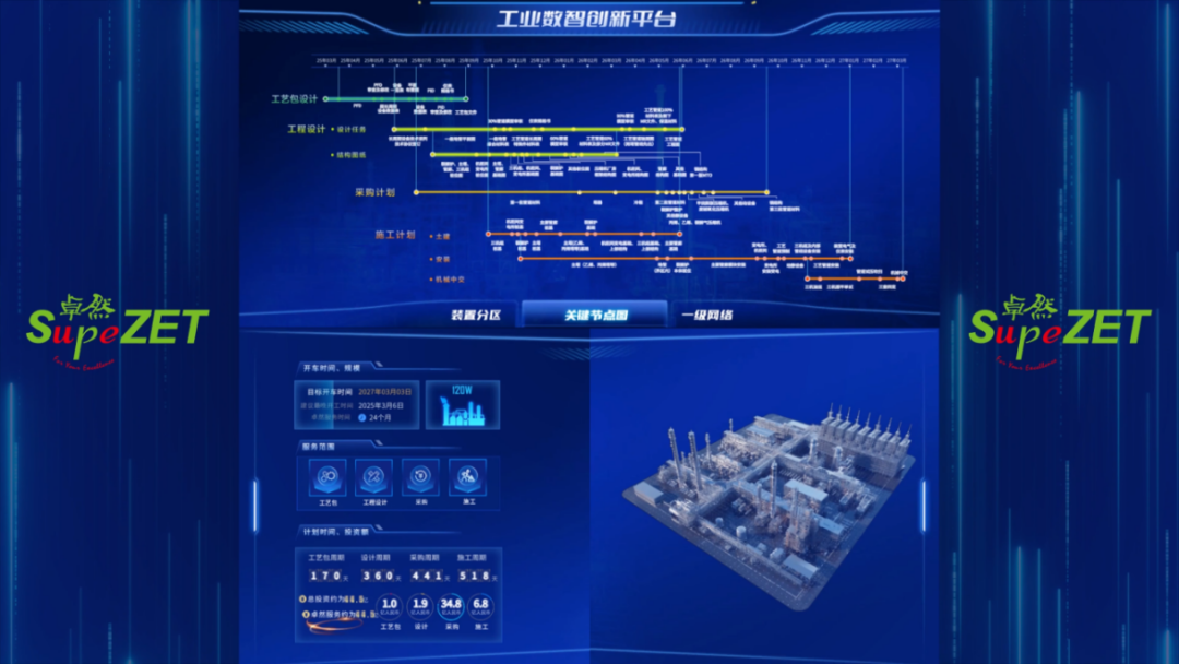 本次展区主要内容包含“两辅一核”,展区的核心区域为卓然股份基地与产品沙盘。将乙烯装置作为切入点,围绕卓然三大基地,体现卓然作为能源化工解决商,在方案、服务、需求提供等方面的显著优势,展现我们设计制造一体化、总包一体化、运维一体化的能力。