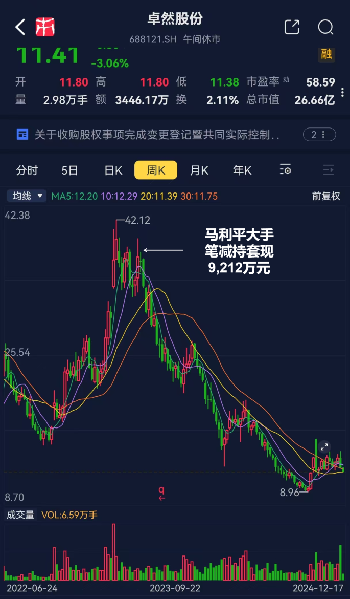 计划披露后不久,赶在大订单释放利好后的股价高位期间,马利平便实施了一次大手笔减持,减持股份248万股,参考市值达9,212万元,是卓然股份上市至今最大的一次大股东减持手笔。