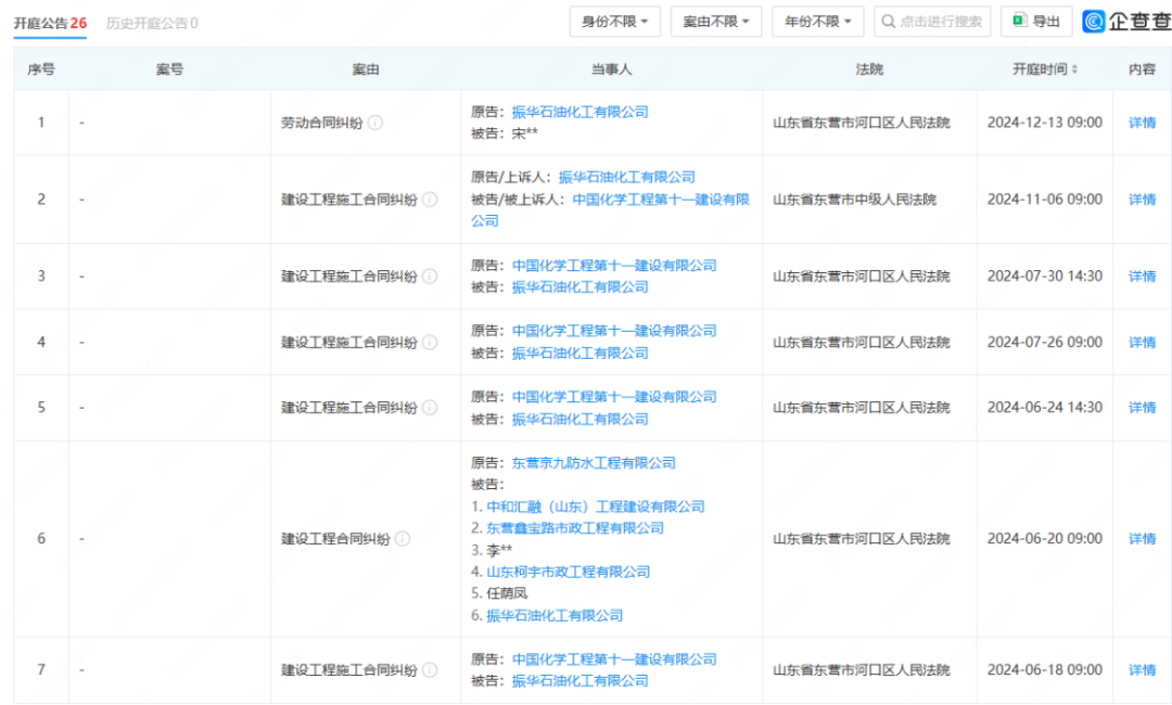 风云君稍微搜一搜企查查就能看到,振华石油自与卓然股份签订合同以来,累计产生了25个合同纠纷并闹上法庭,绝大多数都为建设工程施工合同,这是否代表着其生产经营或许出现了问题。