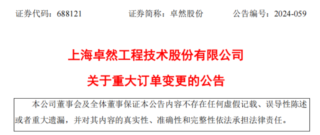 近日又有一公司,一夜之间69亿订单降至1.6亿,金额直接缩水了97%以上,变更后金额甚至都达不到变更前的零头,这样的“离大谱”事件正发生在卓然股份(688121.SH)的身上。