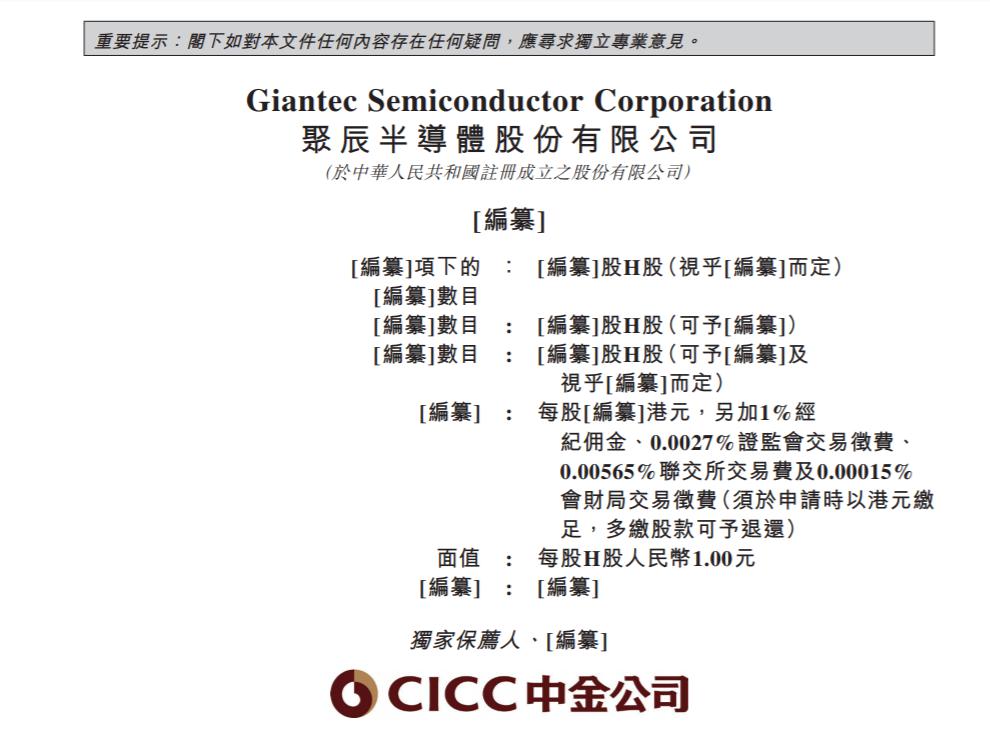 1 月 26 日,据港交所官网,聚辰半导体股份有限公司(以下简称"聚辰股份")向港交所递交招股书,独家保荐人为中金公司。