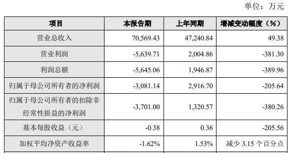 安达智能(688125.SH)昨晚发布的2024年度业绩快报公告显示,2024年公司实现营业总收入70,569.43万元,同比增长49.38%;归属于母公司所有者的净利润-3,081.14万元,上年同期为2,916.70万元;归属于母公司所有者的扣除非经常性损益的净利润-3,701.00万元,上年同期为1,320.57万元。