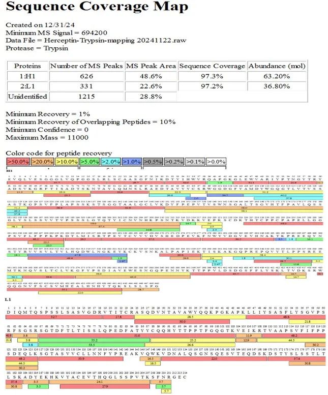 Herceptin序列覆盖率(Trypsin酶切结果)