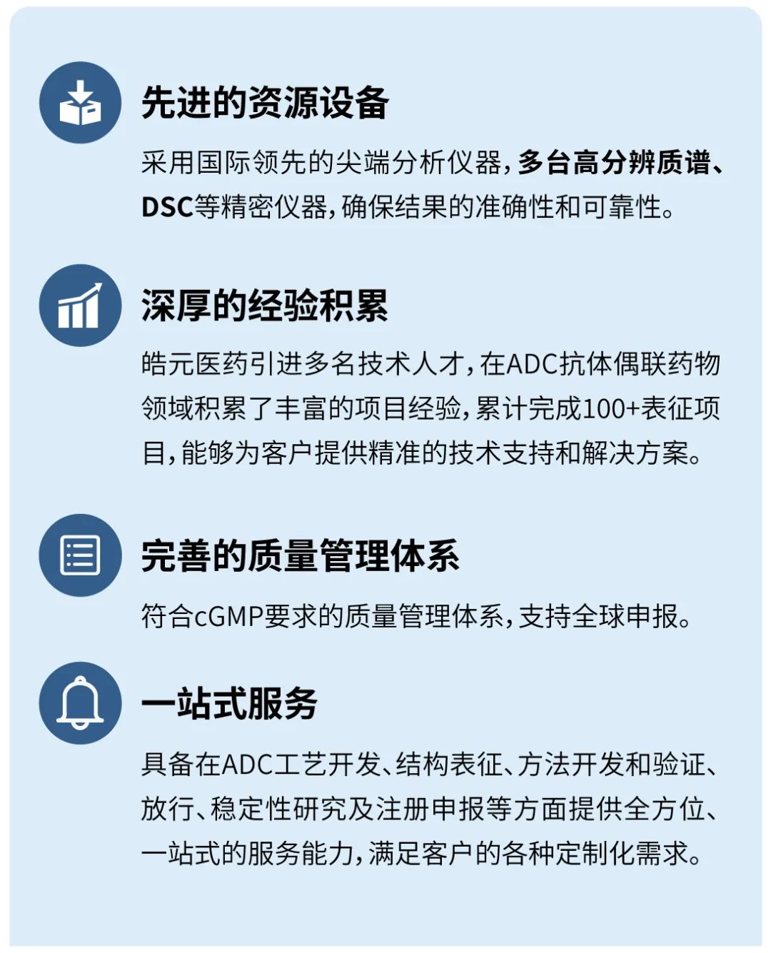 皓元医药分析服务服务平台采用高分辨质谱、DSC、CD、FT-IR等分析手段对ADC抗体偶联药物进行结构确证等服务,高效完成对各谱图、数据的解析,并为客户提供完整的综合解析报告,助力客户推进项目进程。