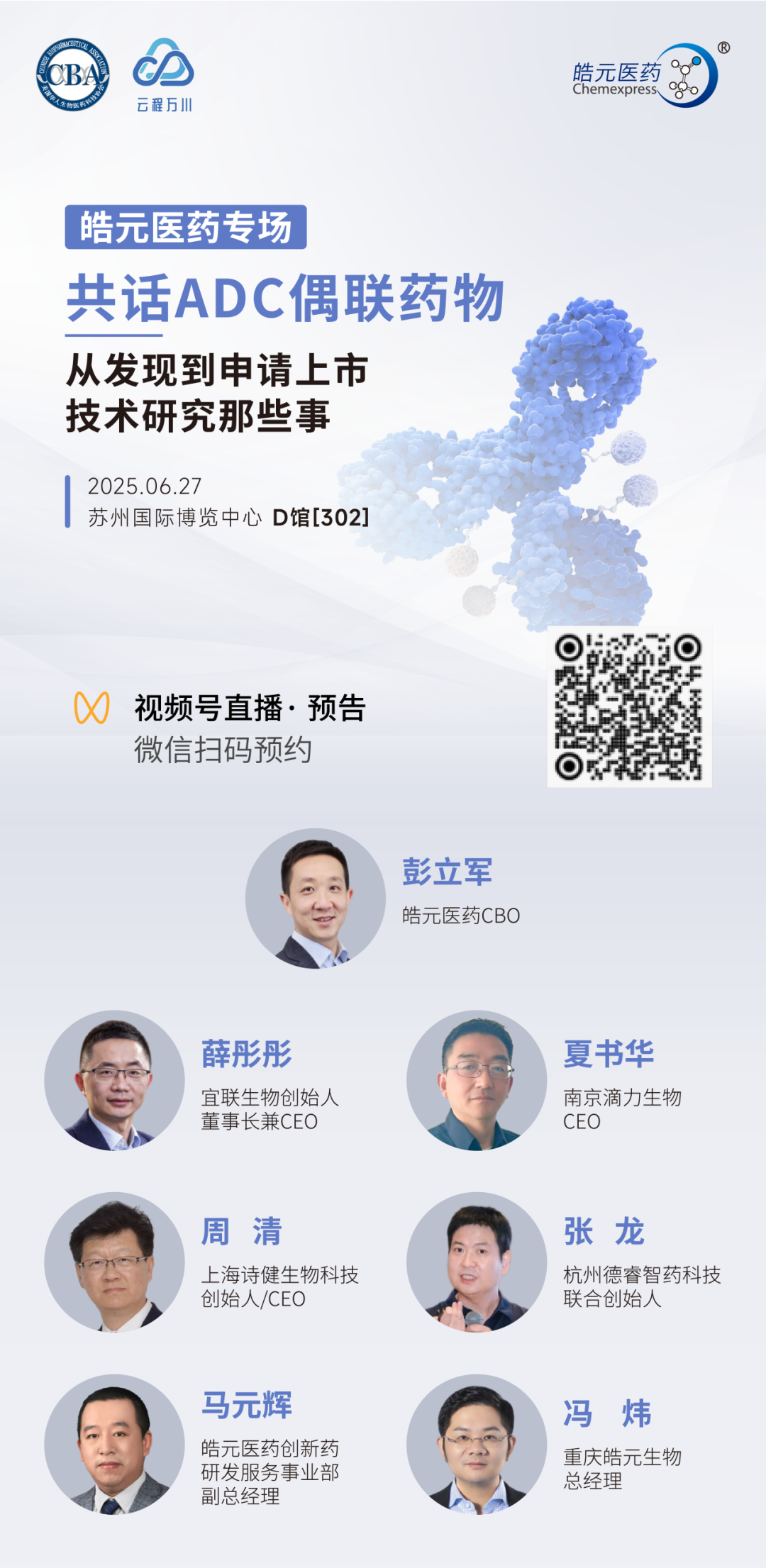 6月27日上午,由皓元医药主办的专场主题论坛将在“2025美国华人生物医药科技协会CBA-China中国年会”苏州国际博览中心进行,本次专场主题论坛以“共话ADC偶联药物——从发现到申请上市,技术研究那些事”为主题,与行业专家共同探讨抗体偶联药物研发领域的前沿技术与产业化实践。