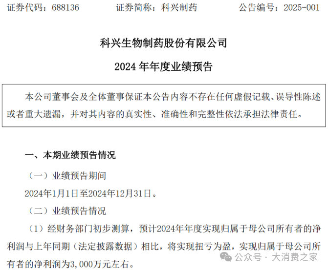 近日,科兴生物制药股份有限公司(688136.SH,以下简称:科兴制药)发布2024年年度业绩预告,预计公司在连续亏损2年后,终于有望扭亏为盈,实现归母净利润3,000万元左右。