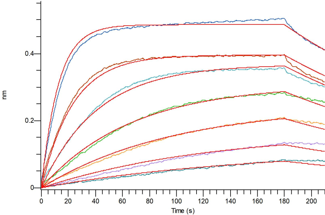经BLI验证,RABV Glycoprotein Antibody (5G10)(货号:DA111)与RABV Glycoprotein(货号:DRA244)结合的亲和力强。