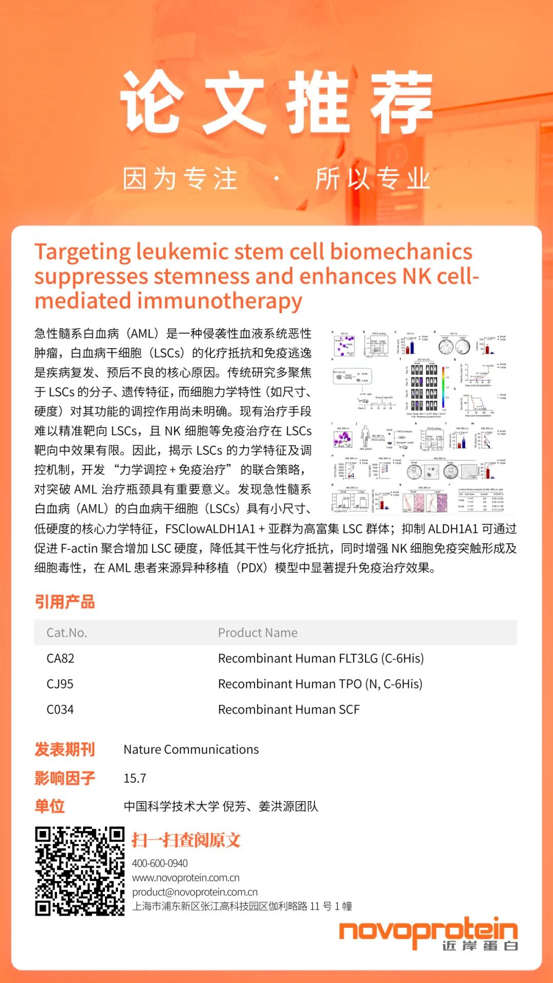 近岸蛋白专注细胞因子研发16年,始终坚持<0.01EU/μg的低内毒素标准,可提供近400种经严格验证的细胞因子产品,文献引用超3000篇。我们致力于成为科学家最得力的科研伙伴,用可靠的“实验基石”,助力更多像这样闪耀的“科学突破”。