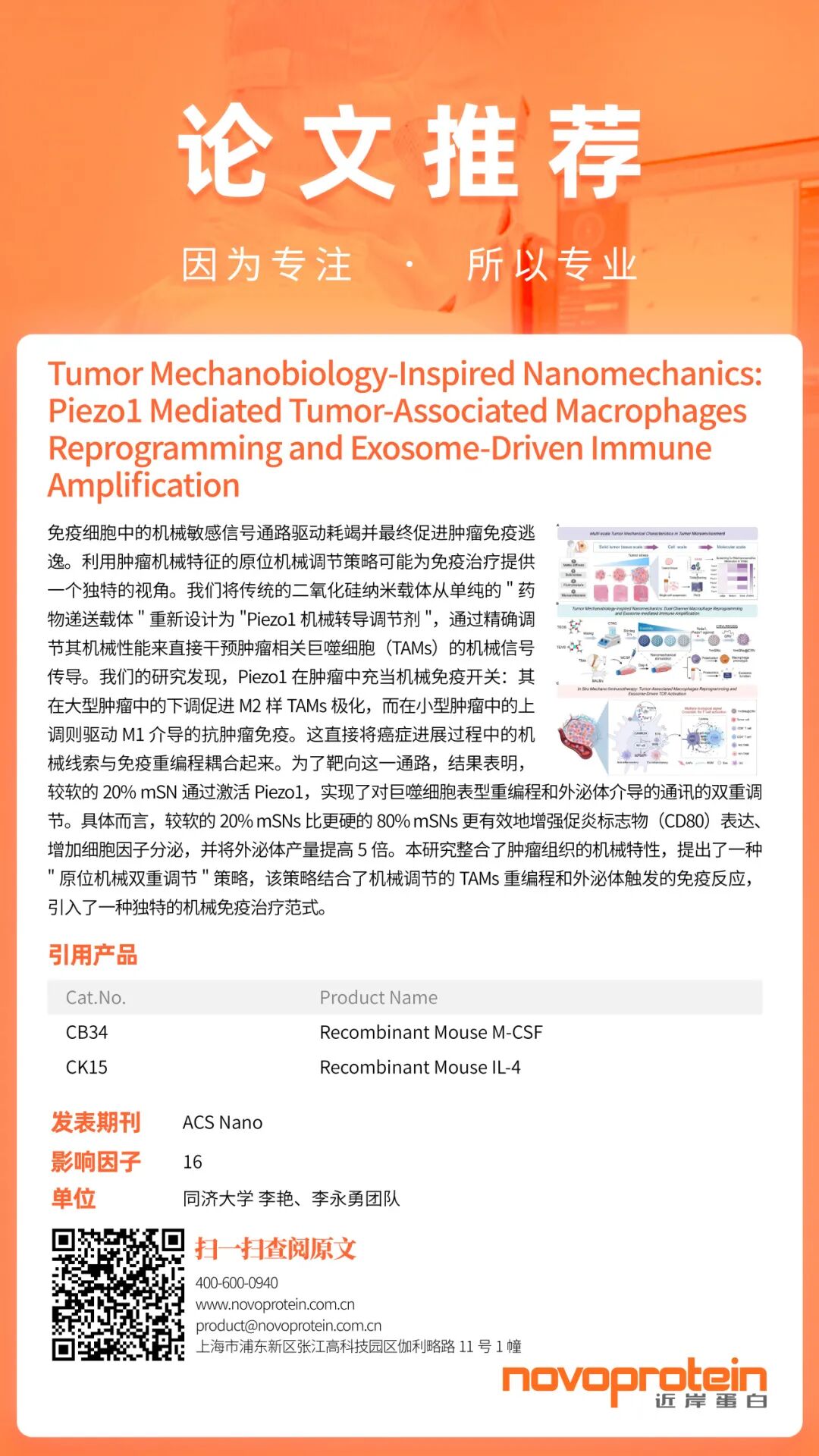 这项研究中在T细胞活性测定实验中,团队采用了近岸蛋白的Recombinant Human IL-2(Cat.No.:C013);在B16F10-OVA的抗原提呈试验中采用了Recombinant Mouse IFN gamma(Cat.No.:C746);在BMDM细胞培养过程中,采用了Recombinant Mouse M-CSF(Cat.No.:CB34)。