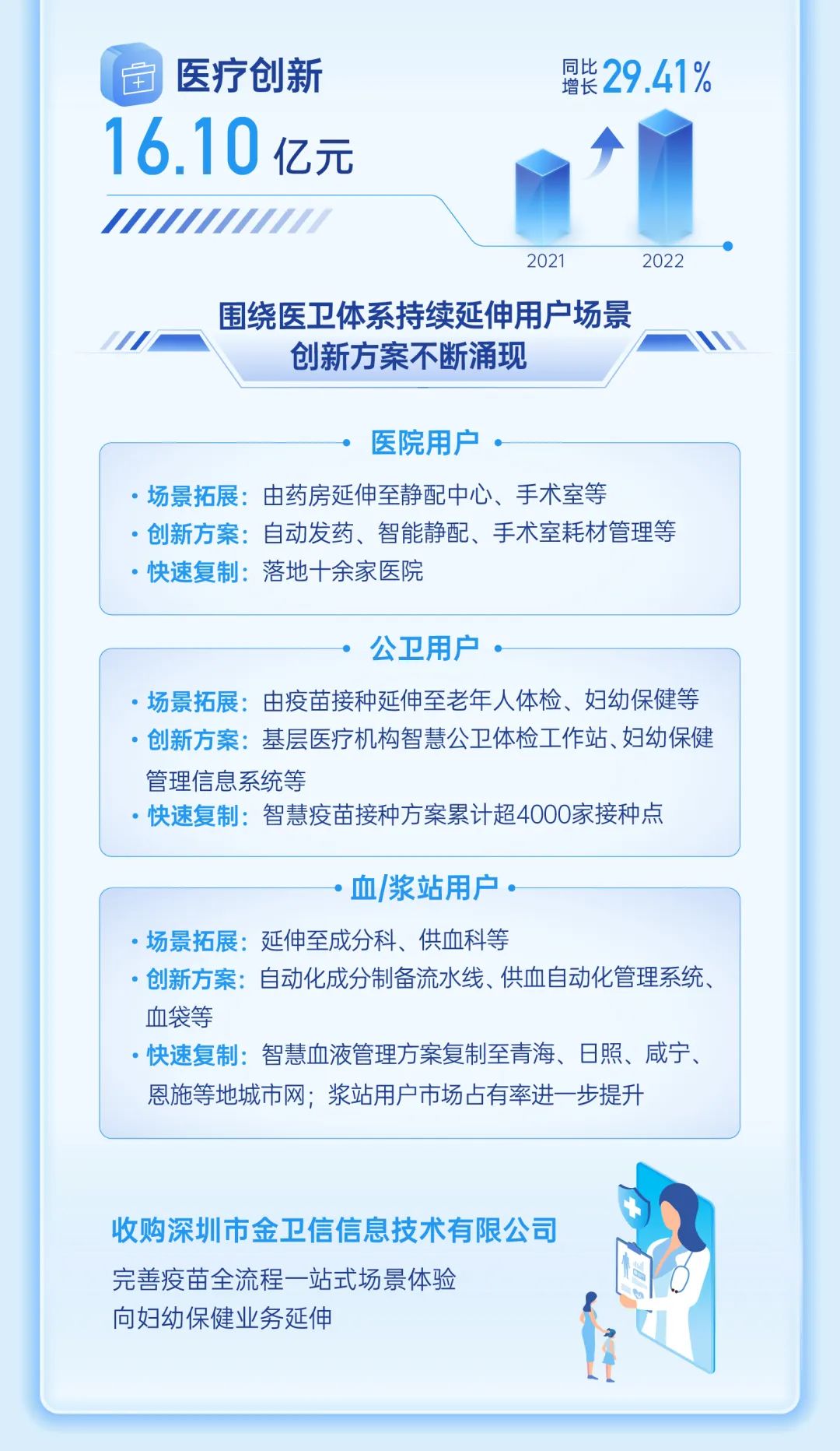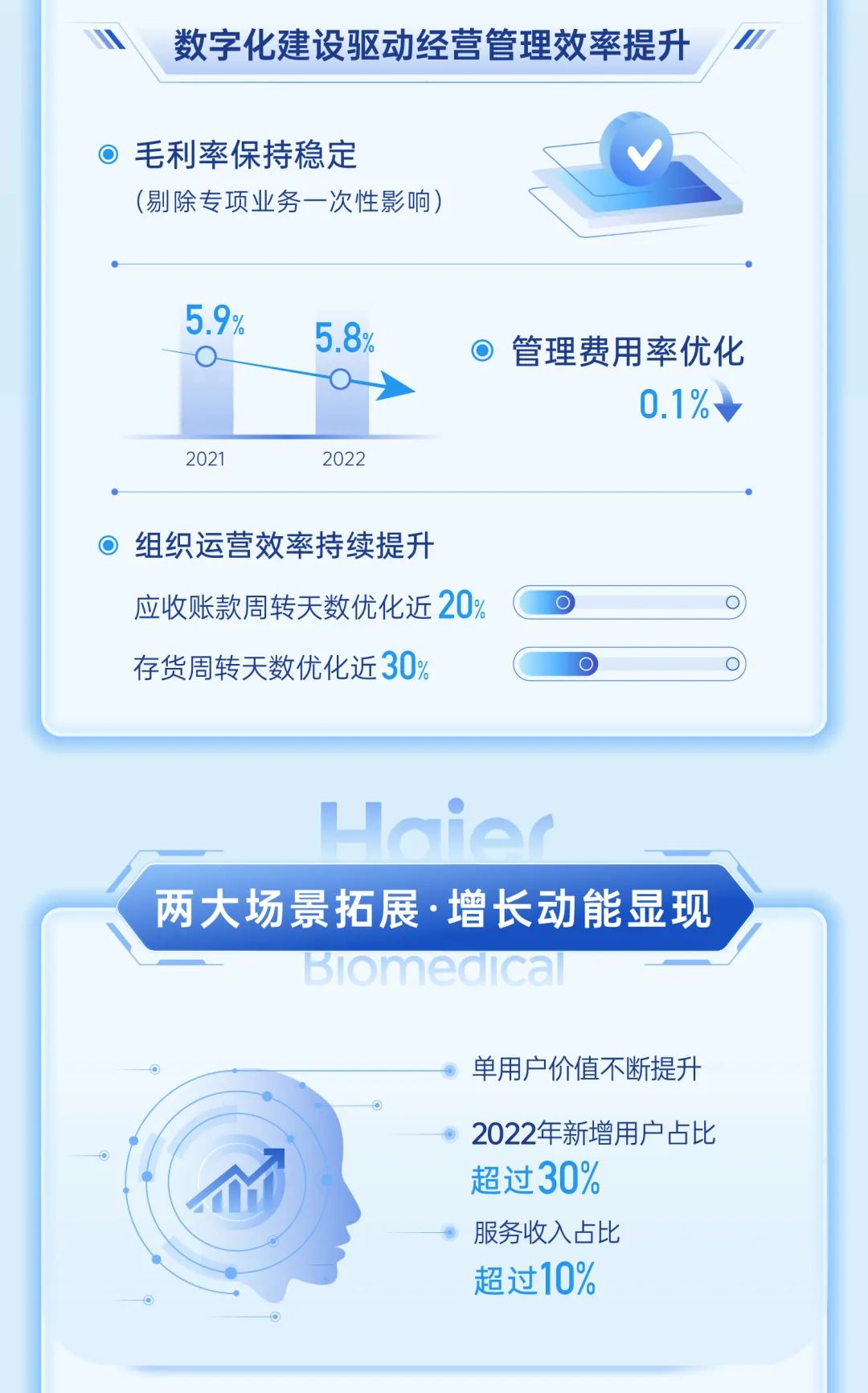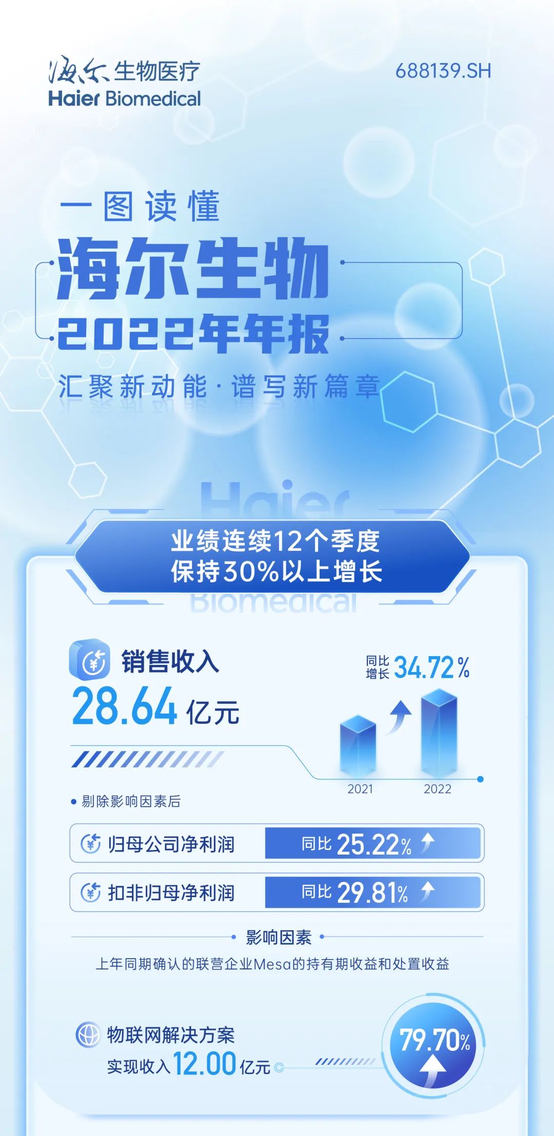 海尔生物(688139.SH)2022年实现销售收入28.64亿元,同比增长34.72%;剔除影响因素后,归母净利润同比增长25.22%,扣非归母净利润同比增长29.81%。公司创生命科学与医疗创新数字场景生态品牌,通过“内生+外延”双增长引擎加速业务布局,坚持以科技创新引领行业发展,为用户创造终身价值。