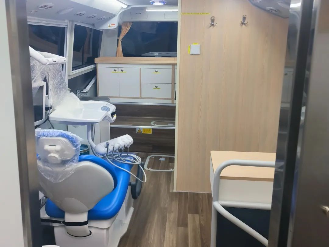 移动DR诊疗车内采用了胸部X射线+牙科诊疗的创新组合,能够满足不同科室场景需求,更大程度上提高诊疗车的利用率。