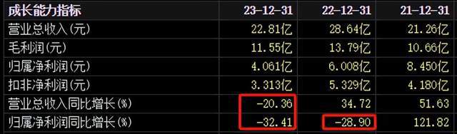 2023年,海尔生物营收净利双降,去年实现营收22.81亿元,同比下降20.36%;实现归属净利润4.061亿元,同比下降32.41%。2023年报提到,受到本期宏观环境和行业等因素影响。2023年,海尔生物股价全年下跌35.82%。