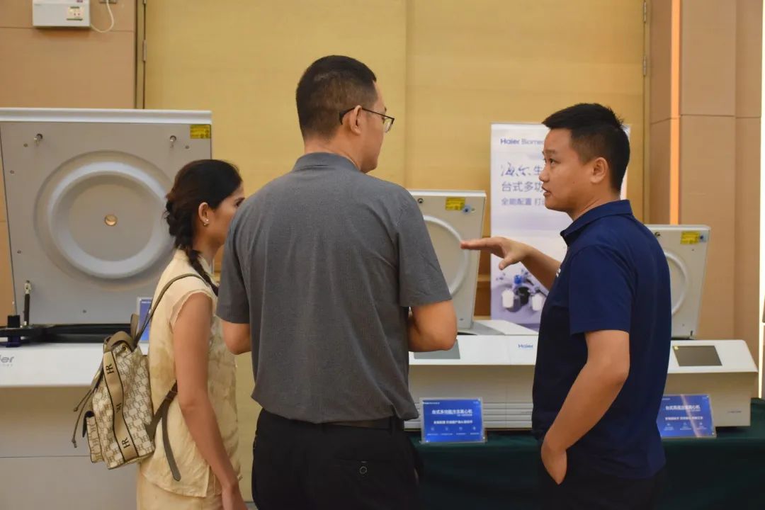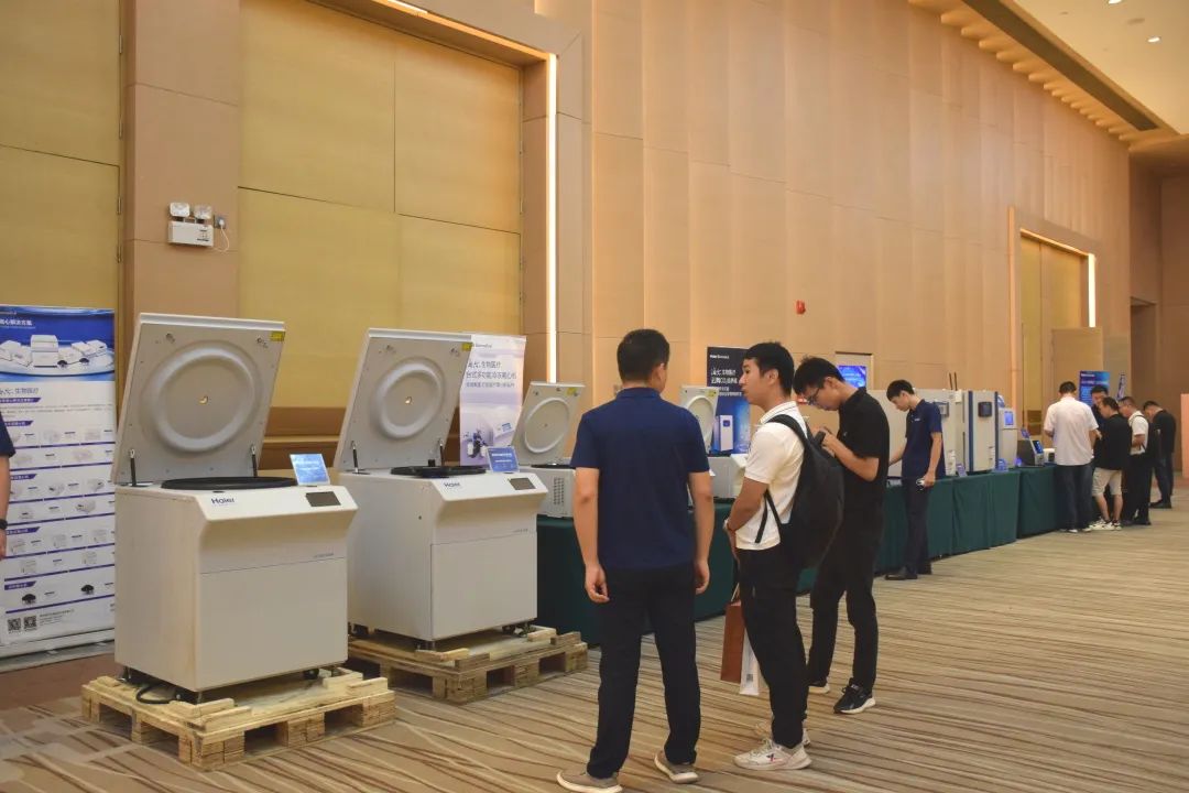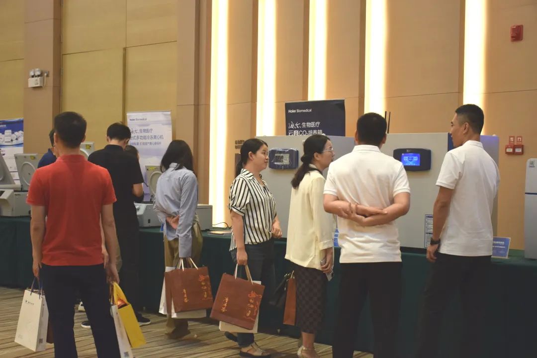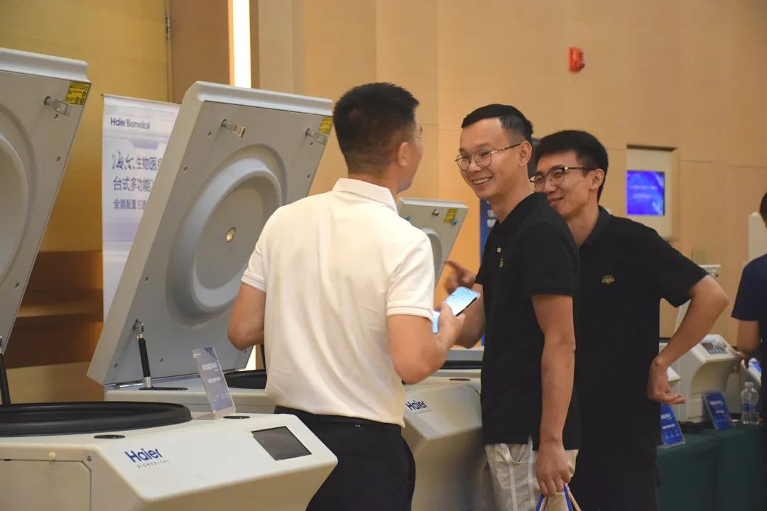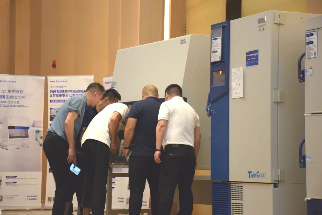 会场展厅,海尔生物医疗展出了方舟智慧生物样本库场景解决方案以及生物安全柜、全系列离心机、恒昀医用冷藏箱、元曦恒温恒湿箱、云育二氧化碳培养箱等科技爆品,众多合作伙伴进行了零距离的交互体验,现场气氛热烈。