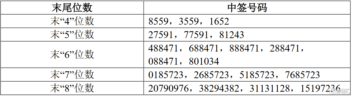 凡参与网上发行申购长盈通股票的投资者持有的申购配号尾数与上述号码相同的,则为中签号码。中签号码共有16,014个,每个中签号码只能认购500股长盈通股票。