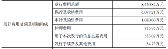 长盈通本次发行费用总计8,420.87万元,其中中信建投证券股份有限公司获得保荐及承销费用6,097.21万元。