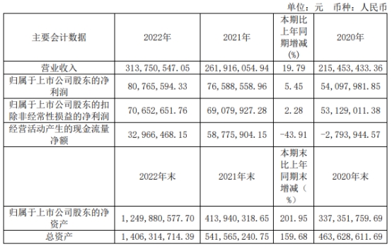 2022年年报显示,长盈通实现营业收入3.14亿元,同比增长19.79%;归属于上市公司股东的净利润8076.56万元,同比增长5.45%;归属于上市公司股东的扣除非经常性损益的净利润7065.27万元,同比增长2.28%;经营活动产生的现金流量净额3296.65万元,同比减少43.91%。