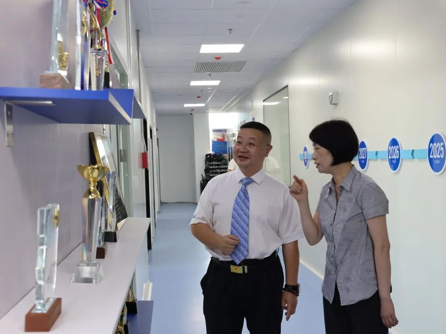 授牌结束后,公司董事长兼总裁皮亚斌陪同总工会领导参观园区,重点展示了公司独特的“双尊文化”——从为员工打造的专属能量补给站、咖啡机、智能按摩仪等硬件设施,到员工关怀、技能提升培训等软性服务,全方位体现“尊重员工,让员工有尊严”的双尊文化。
