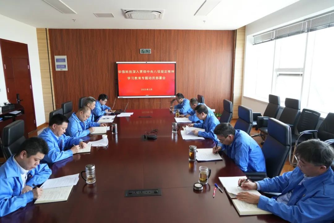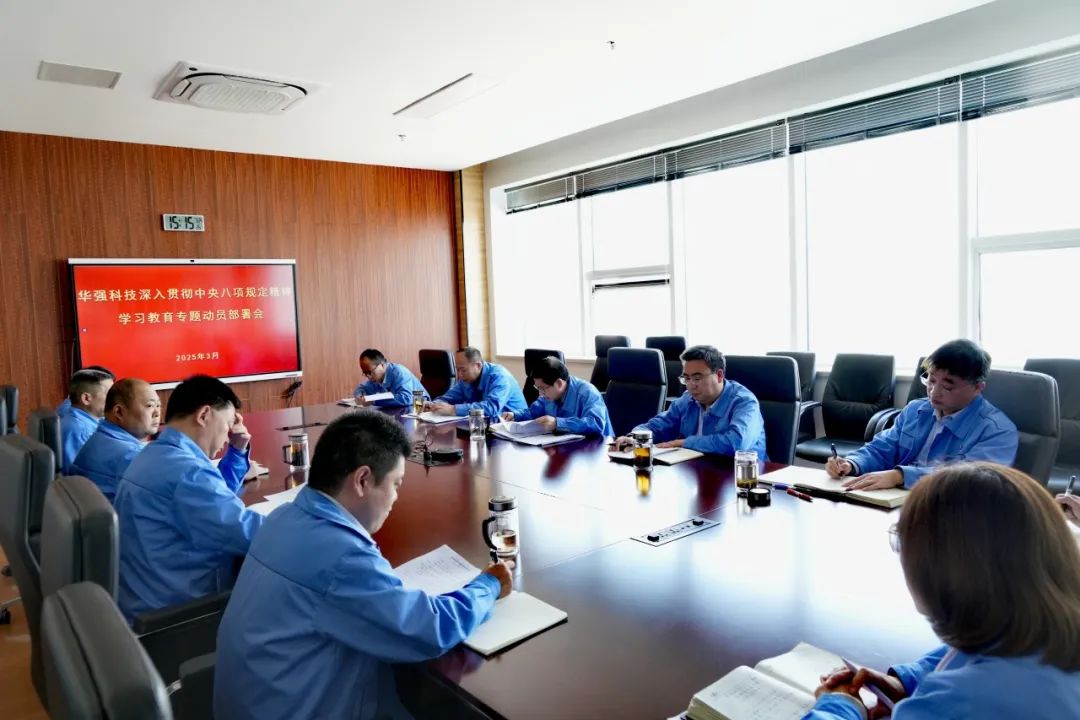 3月24日华强科技党委召开专题会议,学习传达3月12日中央党的建设工作领导小组会议精神和《中共中央办公厅关于在全党开展深入贯彻中央八项规定精神学习教育的通知》,学习集团公司总经理、党组副书记周治平在集团公司党组深入贯彻中央八项规定精神学习教育专题动员部署会上的讲话精神和《中国兵器装备党组关于开展深入贯彻中央八项规定精神学习教育的工作方案》,讨论研究并通过了《湖北华强科技股份有限公司党委关于开展深入贯彻中央八项规定精神学习教育的工作方案》,对公司学习教育工作进行动员部署。