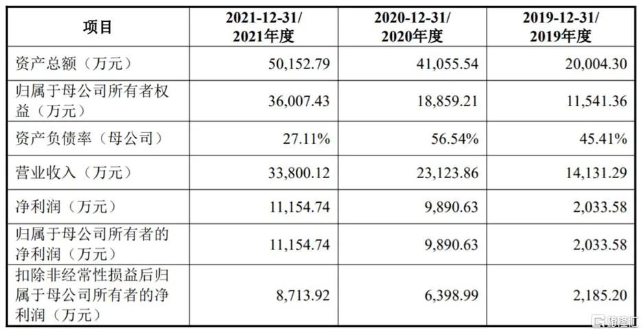 经营成果方面,2019年至2021年,公司业务持续稳步发展。营业收入由 2019 年的 1.41 亿元增长至 2021 年的 3.38 亿元,归母净利润则由 2033.58 万元增至 1.12 亿元,三年累计分红超 2000 万元。