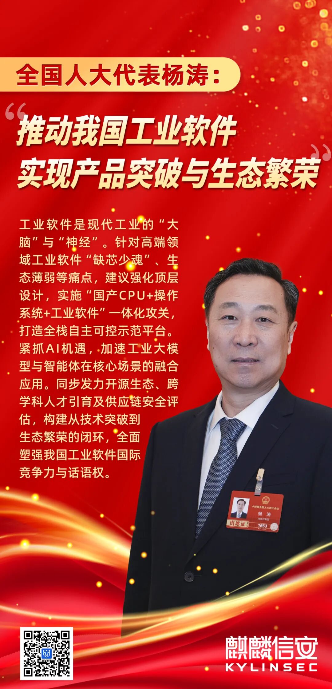 两会声音 | 全国人大代表、麒麟信安董事长杨涛:推动我国工业软件实现产品突破与生态繁荣