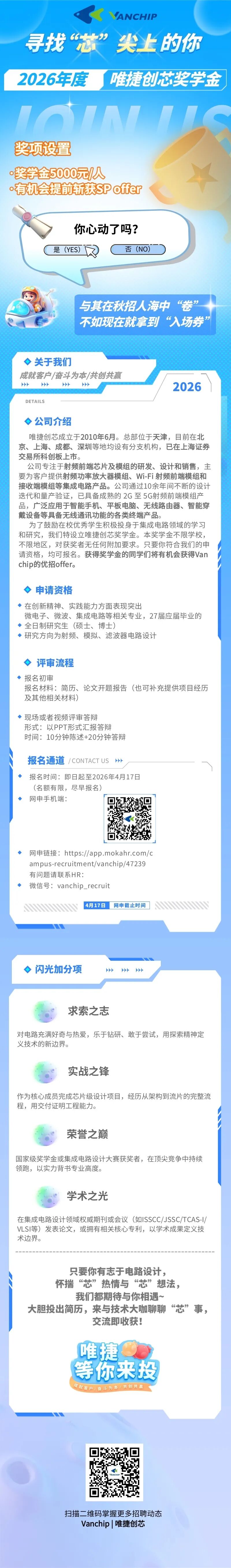 奖学金|唯捷创芯2026年度奖学金项目正式启动