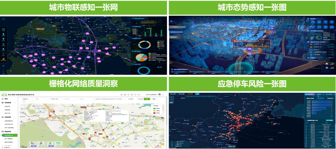 凭借有方科技多年来在物联网通信技术上的丰富经验,结合大数据技术积累、AI技术的前沿研究,基于对各委办城市治理场景更深入、更专业的理解与应用,通过数据的采集、汇聚、治理,面向数据要素×的城市治理方向,可提供“城市物联感知一张图”“城市态势感知一张图”“栅格化网络质量洞察”“应急停车风险一张图”的城市精细化治理数据产品和服务,促进城市治理领域的物联感知数据要素流通。