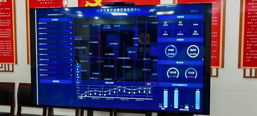 有方科技针对餐饮业油烟污染特性及现阶段的问题、难点,结合餐饮业油烟污染治理、运营维护管理经验推出了“餐饮油烟在线监控平台”,旨在加强技术监管手段的应用,从“人防”向“技防”转变。该平台目前已稳定应用于陕西省兴平市的餐饮业油烟治理监管当中,对全市范围内餐饮业进行在线监控。