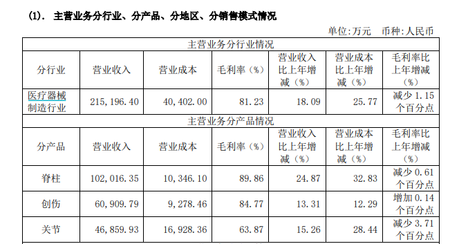 营收、利润双增关节类产品占比突破20%