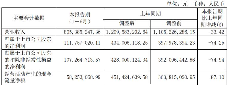 威高骨科(688161.SH)昨晚发布的2023年半年度报告显示,今年上半年,威高骨科实现营业收入8.05亿元,同比减少33.42%;归属于上市公司股东的净利润1.12亿元,同比减少74.25%;归属于上市公司股东的扣除非经常性损益的净利润1.07亿元,同比减少74.94%;经营活动产生的现金流量净额5825.31万元,同比减少87.10%。