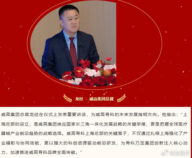 2025年12月10日,上海虹桥前湾新城的云行智创园内,红绸落下的瞬间,“ 威高骨科 ”四个大字正式亮相——这是威高半年内第二次在上海揭牌。
