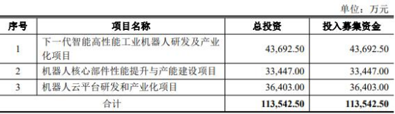 埃夫特最终募集资金净额较原计划少4.10亿元。埃夫特2020年7月9日发布的招股说明书显示,公司计划募集资金11.35亿元,分别用于下一代智能高性能工业机器人研发及产业化项目、机器人核心部件性能提升与产能建设项目、机器人云平台研发和产业化项目。
