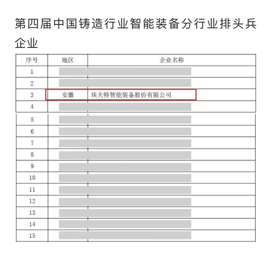 埃夫特智能装备股份有限公司凭借着在工业机器人和跨行业智能制造解决方案领域的多年行业积累,获得“第四届中国铸造行业智能装备分行业排头兵企业”荣誉称号。