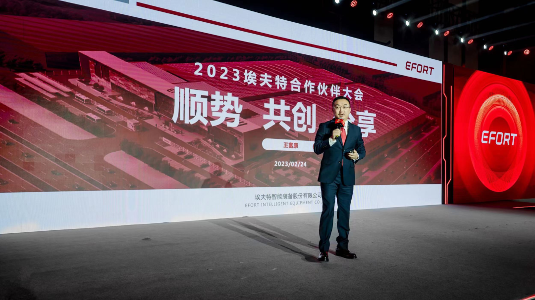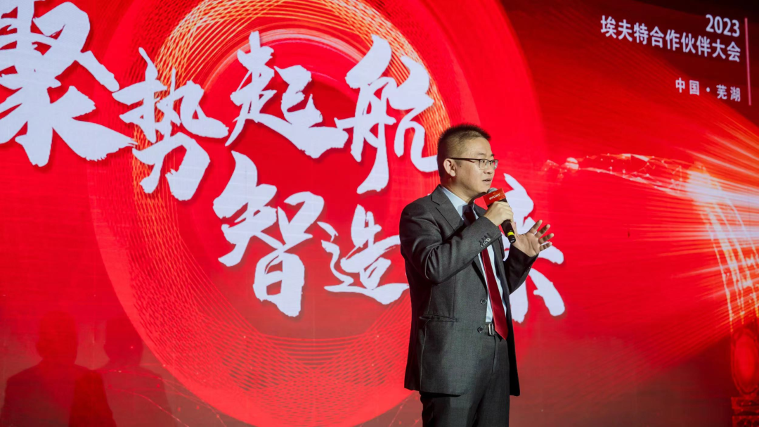 埃夫特董事长兼总经理游玮博士首先登台致辞并与合作伙伴分享了埃夫特的产品理念与发展战略。