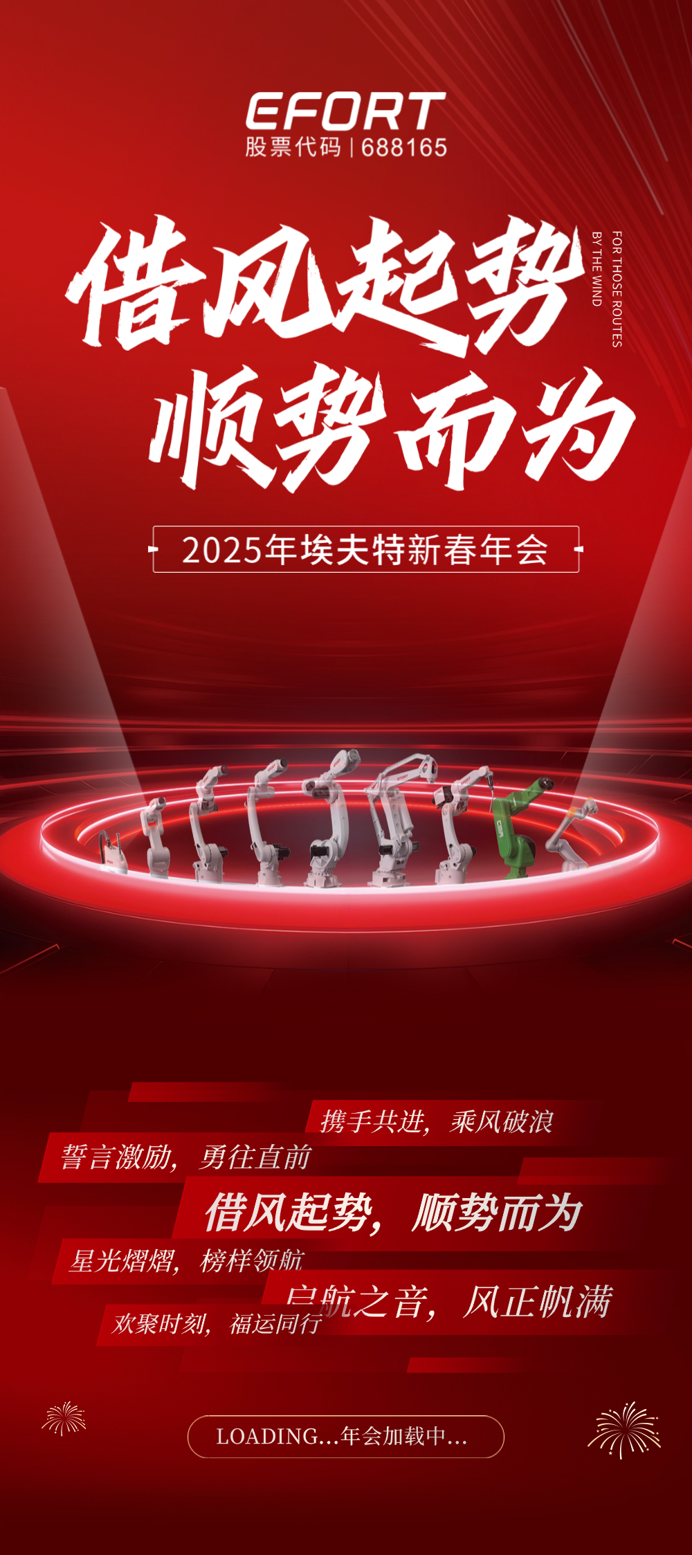 2025年,埃夫特将以“借风起势”的智慧洞察和“顺势而为”的战略布局,在智能制造的浪潮中勇立潮头。面对行业新一轮变革,公司将以技术革新为引擎,以市场突破为动力,在挑战中寻找机遇,在竞争中不断超越,始终坚守“智造智能机器人,解放人类生产力”的使命与愿景,奋力攀登中国机器人产业的新高度。