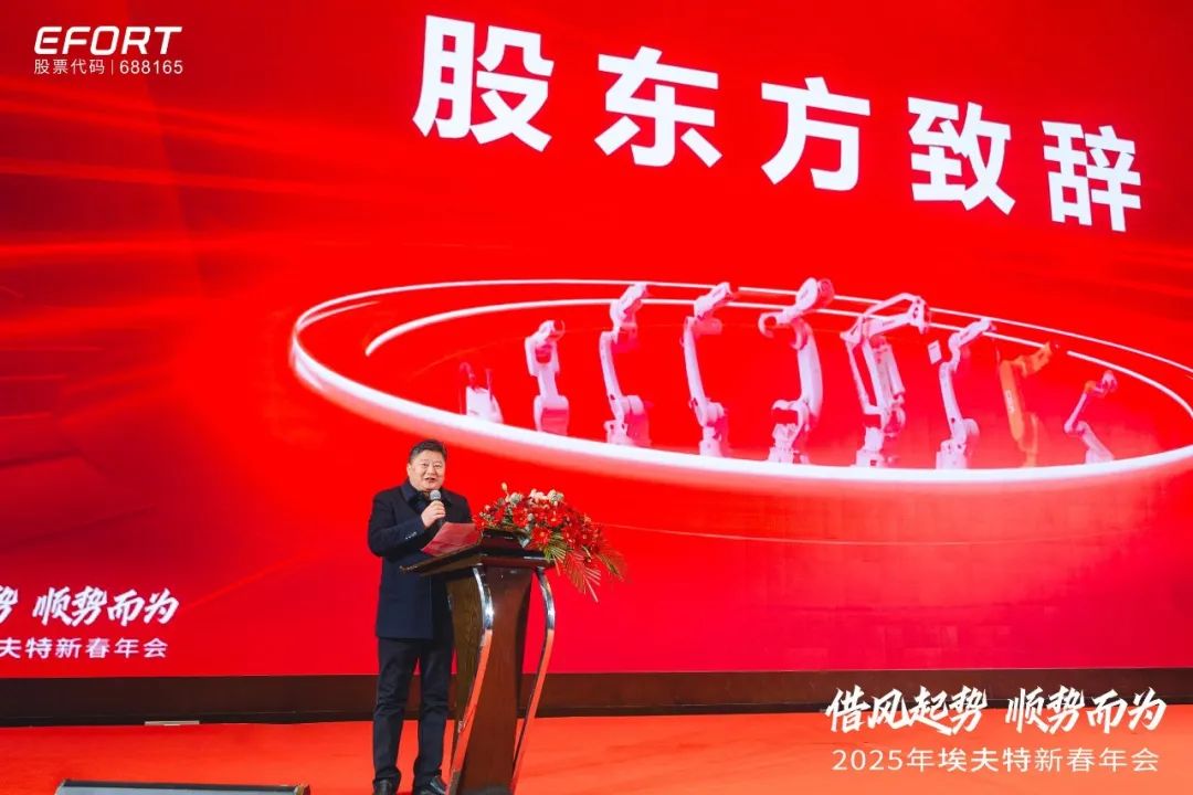 2025年2月14日,以“借风起势顺势而为”为主题的埃夫特智能装备股份有限公司年会盛典在芜湖新华联丽景酒店隆重举行。全体埃夫特员工齐聚一堂,怀揣对未来的憧憬与信心,共同迈向新一年的征程。